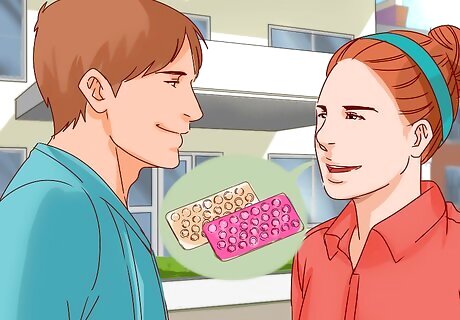 Discuss hormonal contraception. Hormonal contraception is an option for women who feel comfortable introducing hormones into the body that block sperm from fertilizing an egg. Nearly all hormonal birth control methods are at least 99% effective when used consistently and correctly. Hormonal birth control is often used with a barrier method, like a condom, for extra protection against pregnancy. Tell your date if you are already using hormonal contraception. This can serve as reassurance for someone who is concerned about an unwanted pregnancy. You might say, “By the way, I’m on the pill, so we don’t have to worry too much about pregnancy.” If you are a man, consider asking your date if she is using any hormonal contraception. Try saying, “Hey, are you on any birth control? I was just wondering if there would be any backup so you don’t get pregnant.”