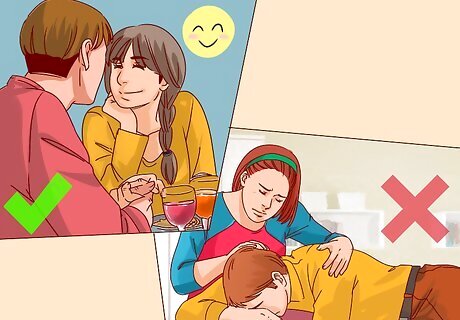 Test the waters. You may not be sure if you (or your date) want to have sex on the first date. Some people avoid having sex, or even talking about sex, until they’ve gotten to know the other person better. If you are both having a good time, the idea of sex may feel right for both of you. Look for signs that your date is interested. Someone may show interest by flirting with you on or before the date. Your date may flirt with you by maintaining eye contact and smiling, or touching your arm. You may have decided to have sex before meeting in person. If that is the case, think about if you still want to go through with it. Having sex is a significant step, so make sure that you feel comfortable doing so with the person you are on a date with and on a first date.
