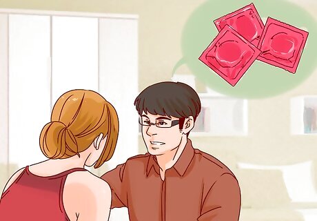 Discuss non-hormonal contraception. If you do not want to have a child, you and your date should discuss ways to avoid pregnancy. Non-hormonal contraception prevents sperm from fertilizing the egg without introducing hormones into the female body. Spermicides, sponges, and condoms are all examples of non-hormonal contraceptives. Male condoms are widely used, relatively cheap, and easy to find. They are 97% effective against pregnancy and can also protect against sexually transmitted diseases or infections. Ask your date if they have a preference for a certain type of non-hormonal contraceptive method. Try saying, “I’ve got spermicide, does that work for you?” You may agree or disagree with your date’s suggestion. Be sure to communicate the method that feels most safe to you. You might say, “We can use spermicide, but I’d also like to use a condom because it provides a physical barrier.”