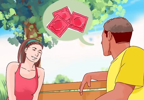 Discuss ways to avoid contracting infections. Regardless of whether you or your date have an STI, you may want to use barriers as an extra safety precaution. There are many physical barriers that can be used during oral, vaginal, or anal sex to avoid the passing of disease through bodily fluids. Common physical barriers include the male condom, the female condom, and dental dams. All are effective for preventing the spread of STIs. Decide on what method you are most comfortable using and check with your date. Condoms are commonly used as barriers for oral, vaginal, and anal sex. They are fairly easy to use, safe, and effective when used properly. Use condoms every single time you have sex. You must use condoms (and other physical barriers) for the full duration of skin to skin contact. Do not wait to put a condom on after you have already started having sex, and do not remove a condom before you are finished having sex. Note that physical barriers do not always protect against the passing of STIs. Some STIs can be passed via contact with skin or saliva. Condoms, for example, do not fully cover areas which may be affected by and STI, and are, therefore, not 100% effective.