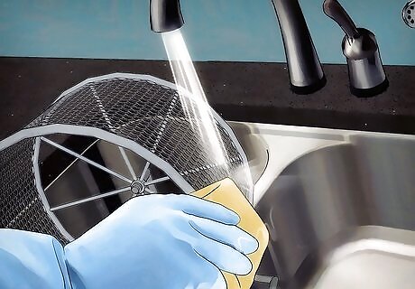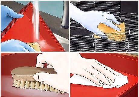 Clean toys. Hamsters can be very active, so it's a good idea to supply them with several toys. One of the most popular options is a running wheel. Running wheels can be purchased at pet supply stores and make a great addition to your hamster's home. During your weekly cage cleaning, take a few minutes to clean the wheel. Clean the wheel with warm water and a mild soap. Do NOT buy a metal wheel, as it can damage your hamster Take the wheel out of the cage for cleaning, so that you can easily access all surfaces.