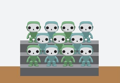 Place your favorite Funko Pops in an acrylic case. Assemble a bunch of figures from the same franchise, or opt for no organization at all. Use the risers in an acrylic case to display your Pops like they’re part of a class photo. For this type of display, make sure that all of your figures are the same height. This works best with smaller Funko Pops.