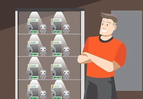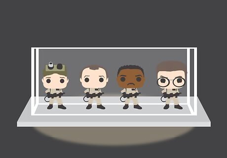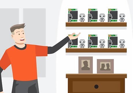 Set up a glass case if you want to keep your figures somewhere fancy. Make your Funko Pops the focal point of the room by placing them in a tall glass case. Similar in size to a bookcase, this display method lets you show off your figures like a retail store would. Since larger glass cases can cost over $1,000, consider using this kind of item to display your more expensive Funko Pops. For instance, if you have the rare Ned Stark Funko Pop worth $1,000, this might be a great way to display it. Since a glass display case is used to show off your most treasured items, consider keeping it in your bedroom.