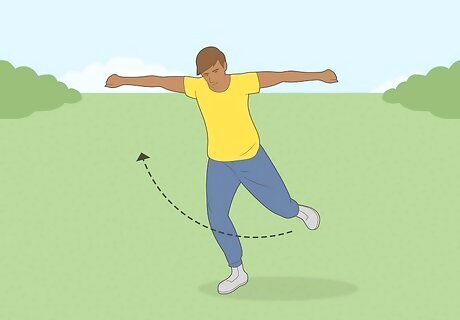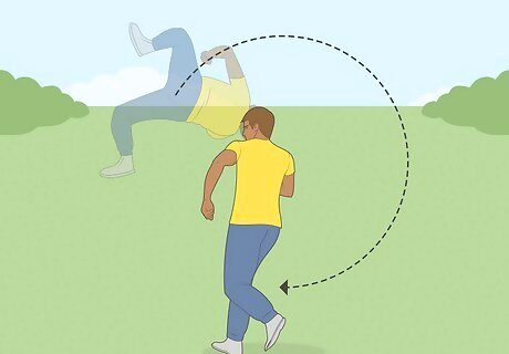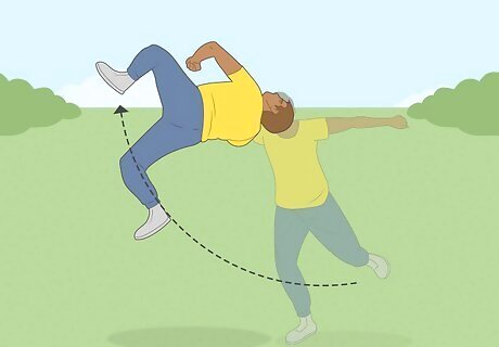 Takeoff. As your leg swings like a pendulum, swing your arms up like you would in a regular backflip, and look back. The anchor leg will jump, but will provide minimal lift. Tucking is optional. Usually this move is performed in a layout position, but when learning, tucking by bringing the swinging leg toward the chest will help make the rotation faster and thus the move easier.