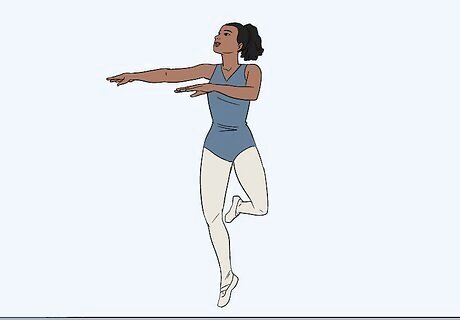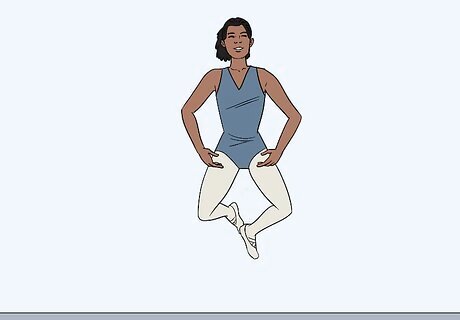 Jump into the air while doing a passe. Make sure to jump off with two feet, springing off the supporting leg. Since you are in fifth position, lift your front leg into a passe, not the back. This move can also be called saute passe.