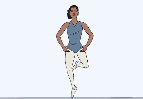 Do a demi-plie. To do this, bend your knees till you form a diamond-like shape with your legs. Start with your legs and feet in third or fifth position, depending on what level you're at.