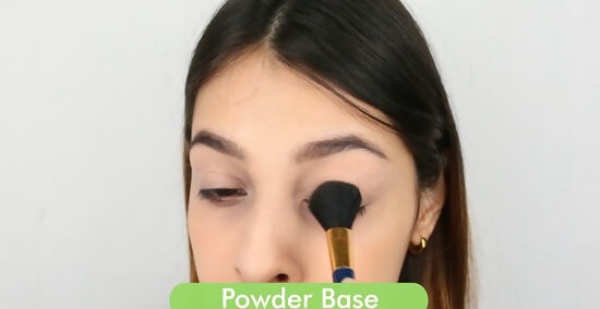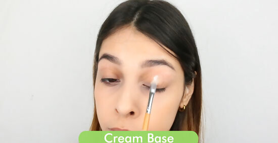 Start with a cream base on both eyes. This base will ensure that the powder sticks to your eyelids and lasts all day. Use your fingers to rub it gently all over both eyelids.
