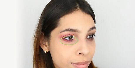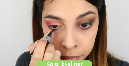 Place black kajal liner on the waterline of the lower lid. Gently pull your bottom lid down to expose the waterline. Slowly and carefully run your applicator along the waterline. Go all the way across, from tip to tip. You can also add little points at the inner tear ducts of your eyes for extra drama.