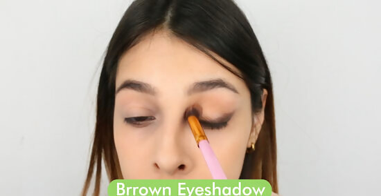 Choose brown eyeshadow for a traditional look. Use a different eye brush to add brown shadow to the lid. Go all the way up to the crease of the upper eyelid (you'll get to the bottom lid later). Keep a different brush on hand to blend the shadow after you've applied it. Blending is one of the most important parts of applying a good smoky eye.