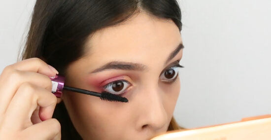 Use black mascara or fake lashes to get thickness and length. If you'd like, curl your eyelashes. Then apply black mascara to your upper lashes. If you don't think your lashes look long and thick enough, choose some high-quality fake lashes and put those on.