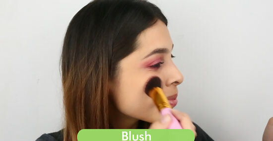 Apply blush to the apples of your cheeks. Use a powder brush to highlight your cheeks with the blush of your choice. Generally, it's a good idea to go with a subtle color that matches your skin tone and doesn't distract from the smoky eye.