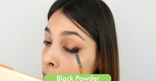 Add black powder to the outer corner of the eyes. This will really “smoke out” your eyes. For now, continue concentrating on just the upper lid. Remember to blend after you've applied the powder. If you're choosing a more colorful eyeshadow palette, don't add anything to the corners of your eyes just yet.