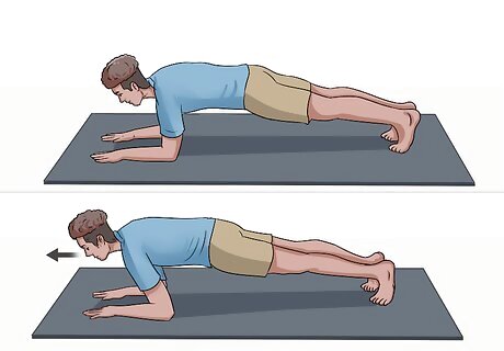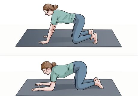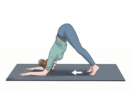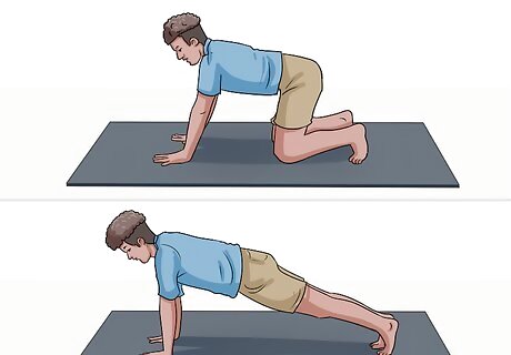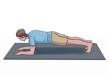Hold the Plank pose (Phalakāsana) to build core strength. Start with your hands and knees on your mat in Table Top pose. Straighten your legs behind you and prop yourself up on your toes. Keep your spine straight and level and your core engaged. Hold yourself in Plank pose for 30 to 60 seconds at a time, 3 to 4 times a day. Rest in Child’s pose between your time in Plank.