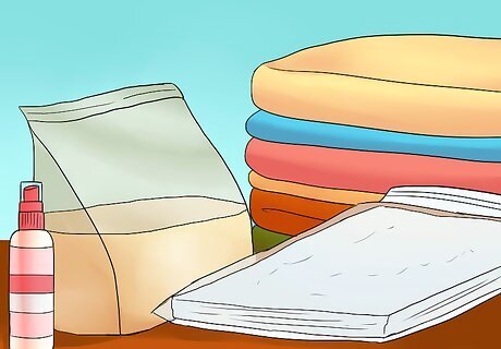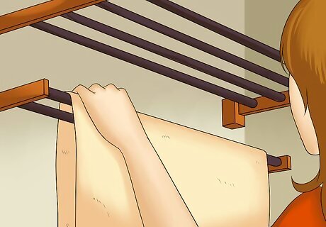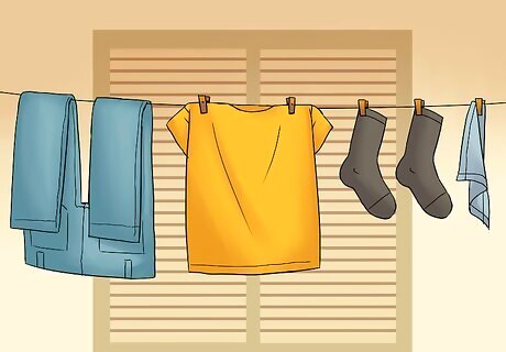 Hang the clothes to dry. Leave as much space around them as possible, and leave closet doors or windows open (climate and security permitting) to ensure air circulation. Many hotel rooms include at least a few hangers in their closets.