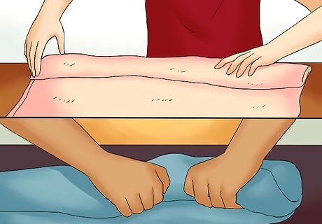 Squeeze out excess water with your hands. Do not wring or twist the fabric. Just squeeze. The more water you get out this way, the less your towel will need to soak up.