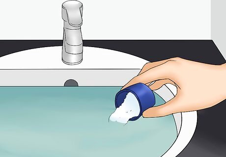 Add laundry and soap, shampoo, or detergent, as you fill the sink with cool or warm water.