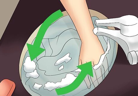 Wash the clothes by moving them around in the soapy water. You can apply extra soap or detergent directly to any stains and any places you know are dirty: bottoms of socks, underarms, underwear, and so on.