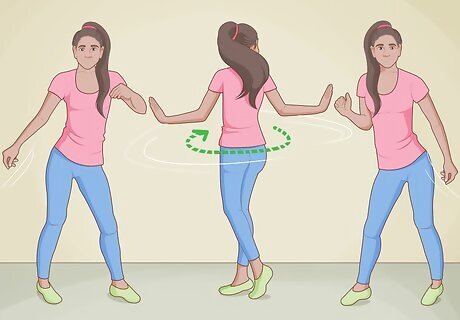Swing your arms and step-touch in unison. Now you’re ready to combine all the moves. Swing your arms to the right as you begin your step-touch to the right. Your step-touch should end when you snap your fingers. Then, reverse the motion—swing your arms to the left while stepping to the left. Repeat until you can do all the moves fluidly and rhythmically. Once you feel confident, try playing “It’s Not Unusual” by Tom Jones to practice dancing to the beat.