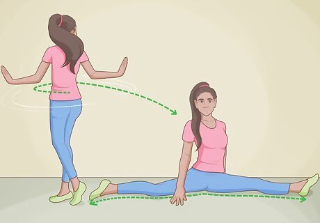 Do a jazz split after the spin. If you are flexible enough, go down into a jazz split with your front leg straight and back leg bent. Once you've hopped back up, continue performing the basic Carlton Dance moves. Make sure to limber up beforehand, to make sure you don't pull a muscle or injure yourself while doing an advanced dance move like the splits.