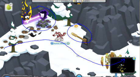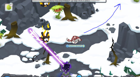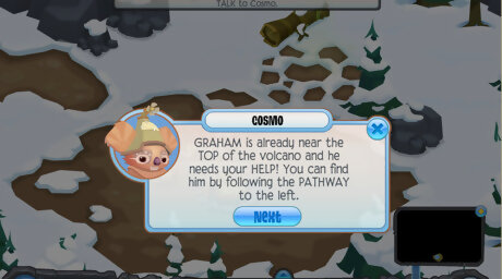 Speak to Cosmo. Once you spawn into the adventure, you'll be surrounded by the snowy area of the base of the volcano. After a brief cutscene of the volcano itself, Cosmo will inform you that Graham, the monkey alpha (first introduced in this adventure) is at the top of the volcano.
