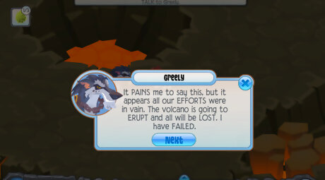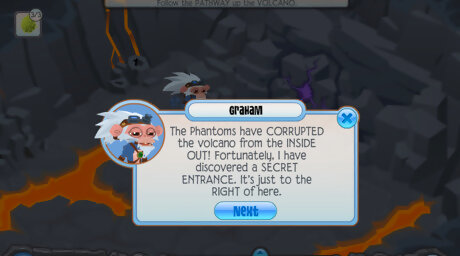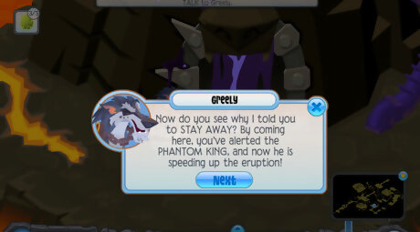 Speak to Greely. Move to the wolf statue's jaws and Greely will appear. He will scold you for exploring the volcano and then tell you that he's been busy discovering the phantoms' secrets. He'll also inform you that the Phantom King is speeding up the eruption and that he has no choice but to let you keep the Phantom King busy while he tries to prevent the eruption from happening. Once he performs his Alpha magic to try to stop the volcano, enter the Phantom door and face the Phantom King.