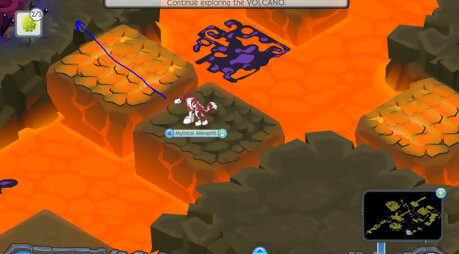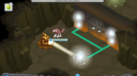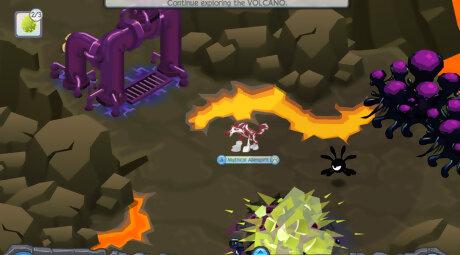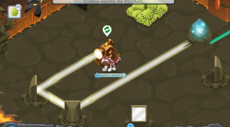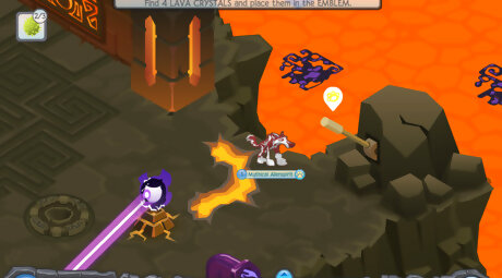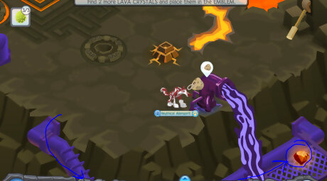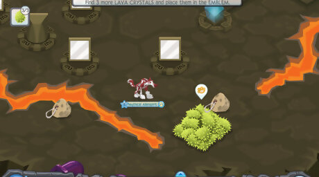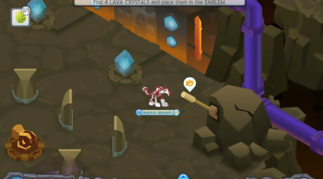 Find the first lava crystal. Move to the purple tube bridge that's at the top left of the fire gate. Before you go up it, you'll be able to see the first crystal, but to get it, you need a cork to plug in the phantom pipe so you can have access to it. Go up the purple tube and avoid the phantom watchers as well as the phantoms. Go up, and you should find a smaller mirror gate. The lever will be there. Click on it to turn off the phantom watchers. Then destroy the phantoms with boomseeds. A pile will be in that area for you to get boomseeds from if needed. When you destroy the five phantoms infesting the area, three will each drop a spotbright. Near the center of the platform, two broken machines are available for you to place two spotbrights into. You'll still need all three spotbrights however. One machine will be to the right, closer to the gate, and the other to the left. You will also need to adjust mirrors. Click on the machine that's to the right twice. Click on the mirror in front of it so it reflects light to another mirror next to that one which you just adjusted. Then click that mirror so that it reflects light to the one next to it and then adjust that mirror so the light shines on the blue crystal. Use the image for reference if needed. Screen Shot 2020 01 31 at 7.31.24 AM.png Click on the machine on the left three times. Click the mirror in front the machine of three times. Then click the mirror the light reflects to three times as well. Another crystal will light and a gate will unlock where the third machine will be in. Grab the third spotbright and plug it into the machine to fix it. Click the machine three times and turn the mirror that the light reflects to three times as well. One of the main crystals will light up. Use the image for reference if needed.Screen Shot 2020 01 31 at 7.34.24 AM.png Go back to the machines you previously clicked to unlock the third machine. Click the one on the right once, then click the mirror the light reflects to so it reflects to the mirror next to it. Click that mirror so that the light goes to the mirror beside it, and then click that mirror so the light reflects to a mirror beside that one. From here, keep adjusting the mirrors after the ones mentioned so the light reaches the mirror in which the leftmost blue crystal is in its path. Click the machine on the left three times so the light goes to the mirror right next to it. Then click that mirror if needed so that the light goes to the blue crystal in front of it. Use the image for reference if needed. When the crystals light, a cork will be unlocked. Grab it and head to the phantom pipe that is at the bottom right of the stone platform with the mirrors you just adjusted. Plug in the pipe, go down the purple phantom tube, and grab the first lava crystal.Screen Shot 2020 02 02 at 8.05.37 AM.png