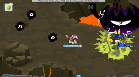 Repeat the process. Keep dodging the Phantom King and dropping boomseeds underneath him when he is disoriented. Kill any phantoms that he summons as well. You'll need to drop boomseeds on him 10 times and then he will disappear in defeat. You will also gain 200 courage points once you've finished. If you didn't kill any phantoms, but you hit the Phantom King with boomseeds 10 times, those phantoms will also automatically disappear.