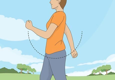 Pace yourself. You can walk at any speed that choose. However, it is best if you walk slowly and take small steps. Choose a pace that feels natural and that is comfortable for you. Let your arms and hands move naturally as you walk as well. Walking meditation should not be strenuous or cause you to feel out of breathe. Try different paces each time you meditate until you find a pace that works best for you. Remember that you are walking to connect to your body and mind, not to get in a good workout.