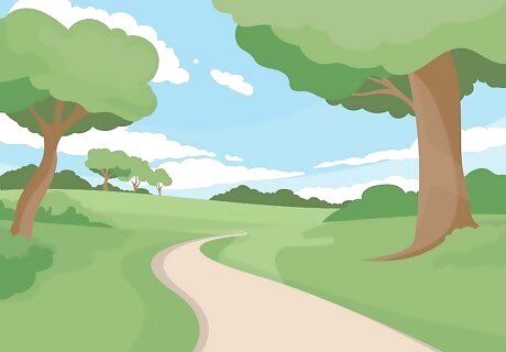 Choose a place to walk. It can be inside or outside, as long as it's relatively quiet and peaceful. Avoid steep hills, or places where you'll have to stop a lot. You will need a space where you can walk back and forth for at least 10 - 15 paces. If you are in a public place, find a spot where you will not be disturbed by other people. Before you begin walking, do some stretches. Rock from side to side and from front to back. Make sure your spine is straight, and you have good posture. If you are indoors, try walking barefoot or in socks. This may make it easier for you to be aware of your feet as you are walking. Practice walking meditation indoors before you begin walking outdoors. There will be fewer distractions. Also, walking meditation often looks strange to other people. You do not want to be concerned with how other people will react to you.