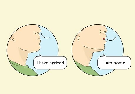 Use a gatha. A gatha is a short verse that you silently recite to help you focus your attention during meditation. This is particularly helpful if you find your mind wandering when you are trying to meditate. Take two or three breaths as you recite each line: Say "I have arrived" as you breathe in. Say "I am home" as you breath out. Say "In the here" as you breathe in. Say "In the now" as you breath out. Say "I am solid" as you breathe in. Say "I am free" as you breath out. Say "In the ultimate" as you breathe in. Say "I dwell" as you breath out.