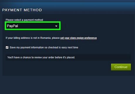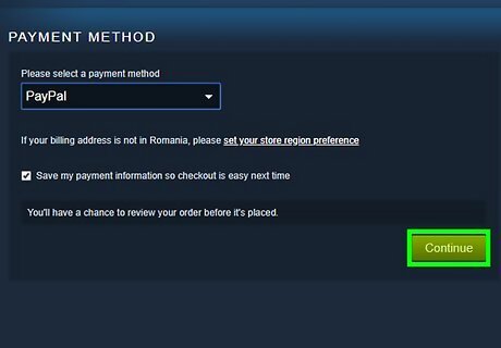Add a payment method. You should now be at a screen that prompts you to fill in information regarding your billing address. Fill out all the necessary fields, click “Continue,” then select your payment method. There should be a display of the different banking cards for you to choose from.