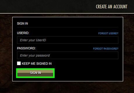 Make an account at Bethesda.net. To play Elder Scrolls Online, you will need to make an account at Bethesda.net, and pay a monthly subscription fee separate from the cost of the game. If you already have an account at Bethesda, skip to Step 2 below. Visit the official website for Elder Scrolls Online by simply typing into your browser’s search bar http://www.Bethesda.net. You should be redirected to a page that prompts you to enter your birthday. This is so the website can confirm that you are of appropriate age to play Elder Scrolls Online. Once you’ve entered your birthday, you will be taken to a login screen. Look to the upper right-hand corner where there should be a “Create an account” button with a plus sign. Click on this button. You will be directed to a screen with several areas for you to fill in. Enter all the necessary information, and make sure you have access to the email you give, as you will need to enter a confirmation code sent to this email address. Check your inbox for an email from Bethesda.net. If you do not see one, check your Spam folder, and then attempt to resend it. Once you’ve entered your confirmation code, your account should be successfully activated