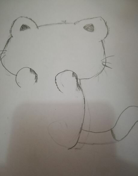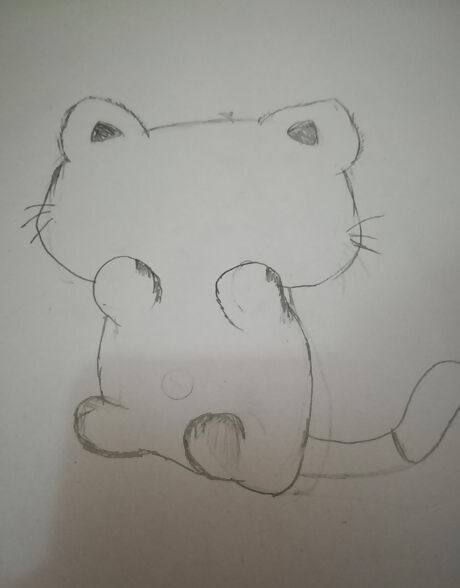 Finish up the body. Just draw a line from the left leg to the left paw. Be sure to make it a little curvy, because it looks cute!