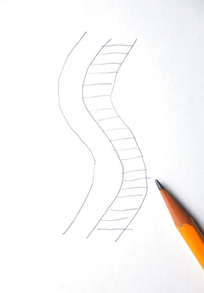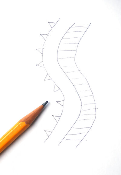 Draw a squiggly line about 1/2 an inch (1.3 cm) from the first line on both sides, using the same curves as the first line.