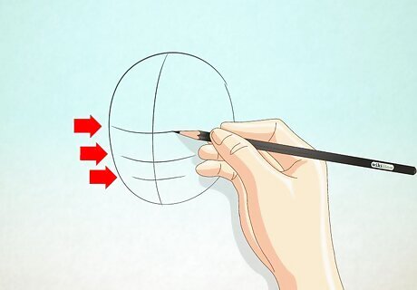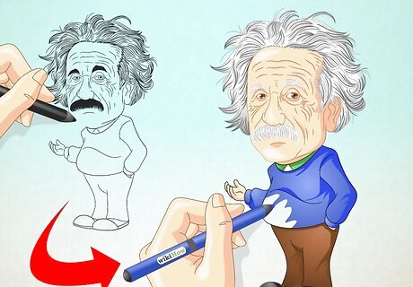 Sketch out a circle for your drawing on quality drawing paper. Draw a large circle; this will be Albert's head. Imagine the circle as a sphere and draw two perpendicular lines wrapping around it. The vertical line determines the center of the face and the direction the head should be facing. Along this line is also where the nose will be located. The horizontal line will determine where the eyes should be placed.
