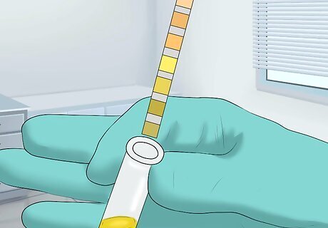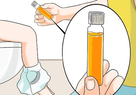 Fill the collection container. Check the instructions to be sure whether your kit tests urine or saliva. Fill the collection tube or cup with your sample up to the minimum fill line. If your kit tests saliva, check the instructions to see if you should wait after eating before you collect a saliva sample.