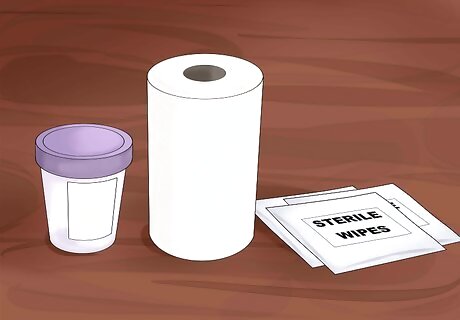 Fill the collection cup. Most home test kits read a urine sample. Remove the collection cup from its foil or wrapper, and fill it with your sample. Make sure to fill it at least to the indicated minimum line.