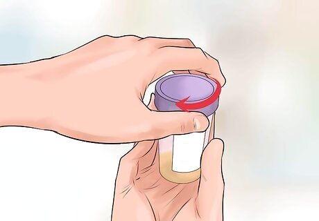 Twist the lid and tilt the collection cup. Once you’ve filled the collection container to the minimum line, twist and seal the test lid. Tilt the cup onto its side to activate the test. Check your kit's collection cup for small legs near the rim, which allow you to rest the cup on its side during the testing process.