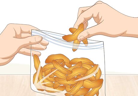 Keep the dried apricots in an airtight container or bag. Use a resealable plastic bag or container with a lid so the apricots keep their leathery texture. Seal the container tightly to prevent the pieces from drying out any further. Label the container you’re using with the date to keep track of how long they’ll stay fresh.
