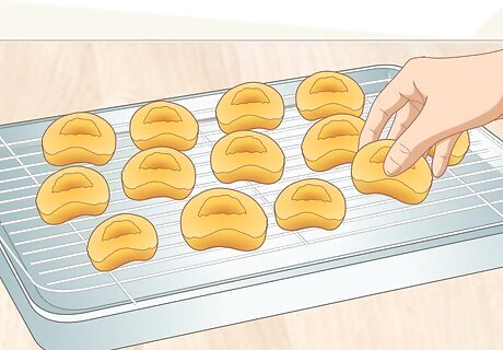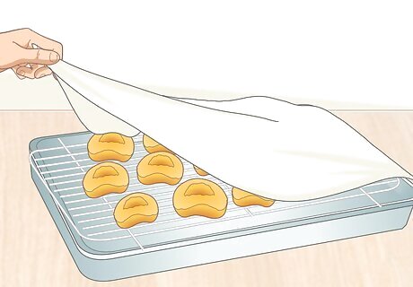 Space the apricots evenly on a cooking tray with a wire rack. Set a wire rack on a rimmed cooking tray so it’s 1 inch (2.5 cm) above the tray’s surface so air can flow underneath it. Place the apricot pieces on the wire rack so they have about ⁄4–⁄2 inch (0.64–1.27 cm) between them. Try to keep the apricot pieces organized by similar sizes so they dry out more evenly. If you don’t use a wire rack, you will need to flip the apricot pieces 1–2 times daily to ensure they’re drying evenly.