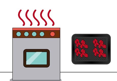 Preheat the oven to 140 degrees Fahrenheit (60 degrees Celsius). You can dry goji berries in the oven using an extremely low temperature. Set the oven temperature to 140 degrees Fahrenheit (60 degrees Celsius) and leave the oven door ajar.