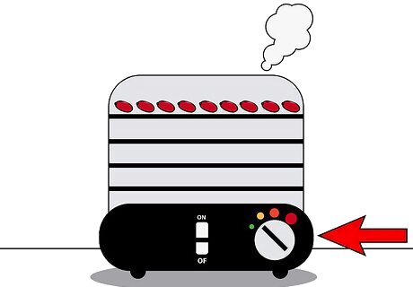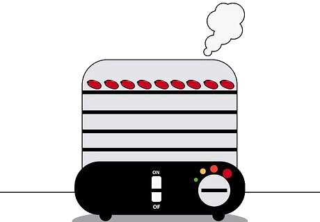 Set the dehydrator to medium-low. Follow the instructions provided by the manufacturer, but typically you should set the machine to medium-low. Check the berries periodically and remove them from the dehydrator once they appear dry.