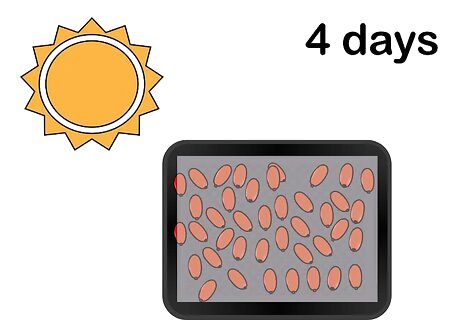 Leave them in direct sunlight for two to four days. In order to sufficiently dry berries using sunlight, it can take two to four days. Check the weather forecast before using this method to ensure that it doesn’t rain. If it does rain, bring the trays inside.