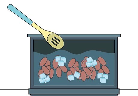 Plunge them in an ice bath. Scoop out the berries using a slotted spoon and immediately place them in a bowl of ice water. The rapid change in temperature will cause the skin of the berries to crack and can help speed up the drying process.
