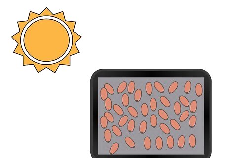 Position the berries in direct sunlight. Place the berries outside in direct sunlight. You should rotate them once or twice a day to ensure that they dry evenly. If you prefer a sheltered location, place the tray with the berries on the dashboard of your car.