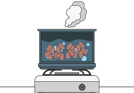 Crack the skins of the berries using boiling water. In order to speed up the drying process, you can crack the skins of the goji berries. To do this, bring a pot of water to a boil. Add the washed berries to the boiling water for 30 to 60 seconds.