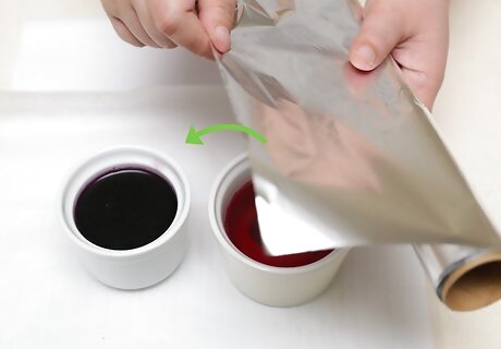 Add the dye to your water. Add only one color in each bowl. If you’re using liquid dye, add one teaspoon per cup of water. If you’re using powdered dye, add two teaspoons. To create darker hues, add more dye to your bath. Dip a small piece of white fabric or a white paper towel into your dye bath to test the color. Add more dye if it is too light for your taste or more hot water if it becomes too dark. Use your spoon to stir the dye. It should be completely dissolved in the water, and the color should be even.