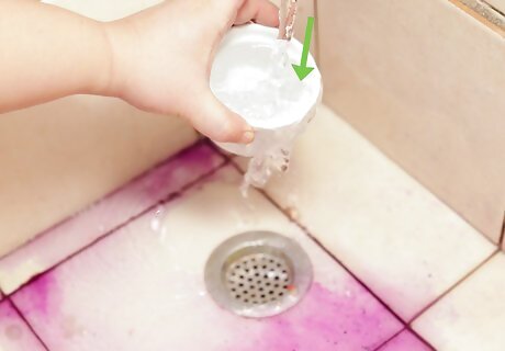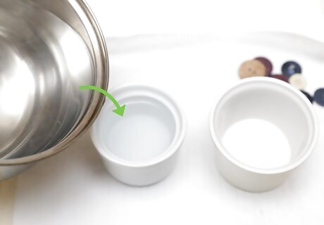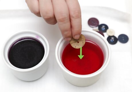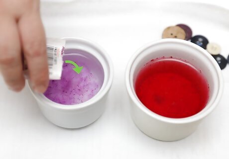 Wash dyeing supplies. As soon as you are finished dyeing your buttons, you want to wash your bowls and spoons thoroughly with soap and water. The longer they sit with dye in them, the harder it will be to get the dye off. If you’re using disposable bowls, simply throw them away.