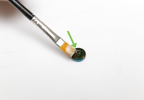 Cover your button with a sealer. This will keep the color in place, and add a protective finish to each of your buttons. Mod Podge works well. You can buy Mod Podge at most craft stores. Choose whether you want to have a glossy or matte finish. In a pinch, you can use glue that dries clear as a sealer instead. Simply take a clean, small paintbrush or cotton swab, and dip it into your sealer. Spread a thin, even layer on one side of your button. Make sure to get the sides of the button covered. Once the first side dries, turn the button over, and apply the sealer again. If you get your sealer into the holes of the buttons, just use something sharp like a toothpick or needle to poke back through the holes.