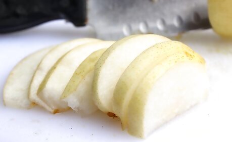 Cut thin slices and serve them immediately. Use your paring knife to cut each quarter into 4 or more thin slices. Asian pears are so crisp that they can be cut into very thin slices with a sharp knife. Asian pear slices usually don't brown as quickly as apples, but they will start to turn soon after you cut them. Browning doesn't affect the flavor, but it does lessen the visual appeal.